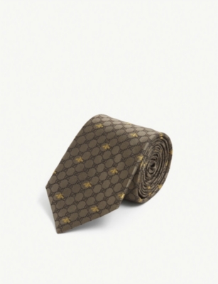 A Gucci tie is a rite of passage; even if you don’t have the full suit, that splash of monogrammed silk is enough to make you feel like you can conquer the world…or at least the boardroom. This iteration has all the covetable branding you could dream of. First, the Double G motif intertwined as diamonds; next, the iconic bee, buzzing over across the fabric; finally, two labels prove once more who the creator is.Gucci silk tie100% silkSelf tie fasteningSlim blade, all over tonal GG logo pattern, all over signature bee motif, embroidered logoDry clean onlyMade in Italy