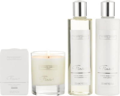 Like a fresh English garden, The White Company's Flowers is a light and pretty blend featuring notes of jasmine, rose, neroli, lavender and geranium. This luxury pampering set includes their signature scented candle, triple milled soap, bath and shower gel and body lotion, beautifully presented in a white gift box.The White Company Flowers luxury setIncludes: signature candle 140g, triple milled soap 150g, bath and shower gel 250ml, body lotion 250ml