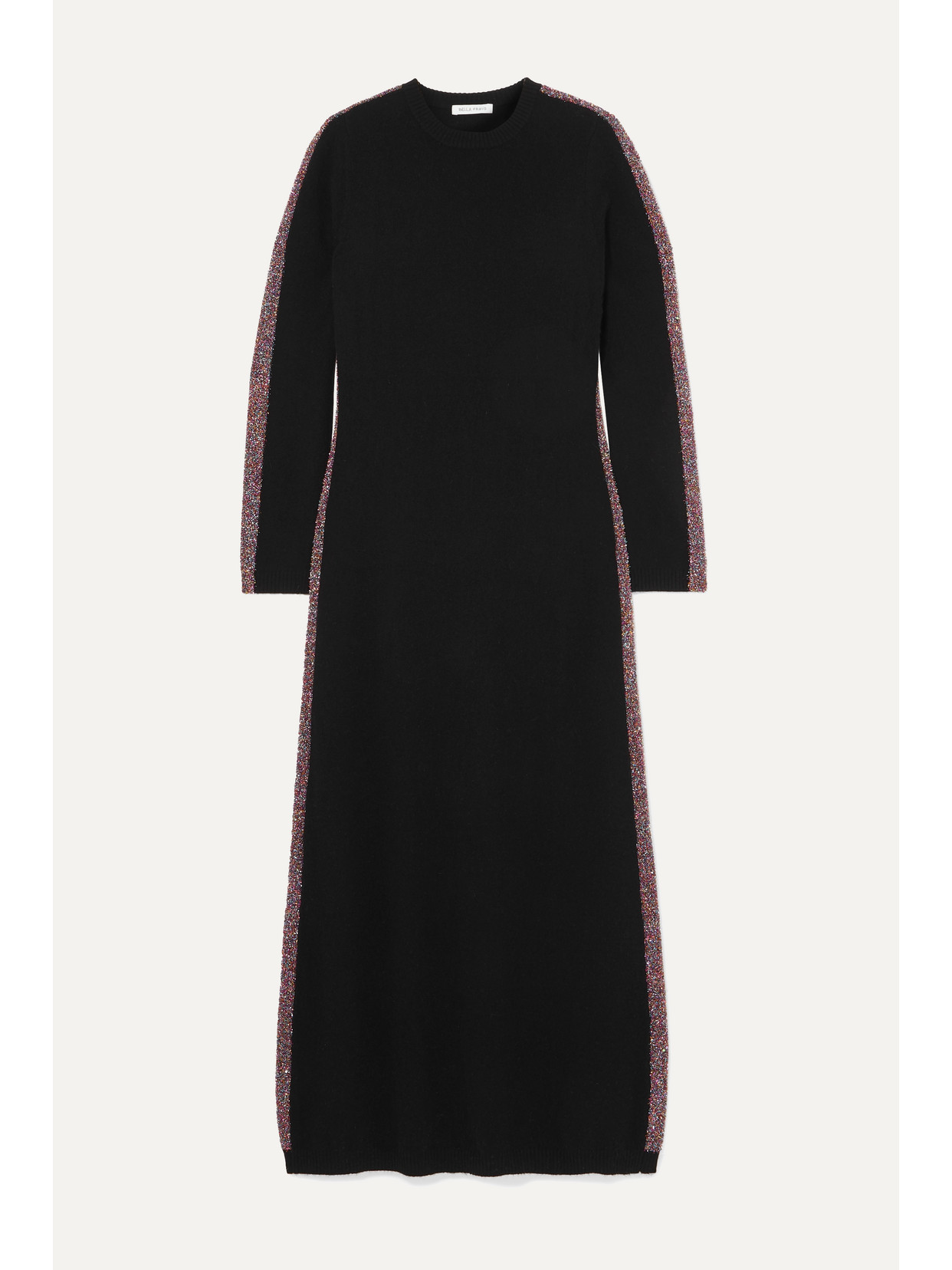 EXCLUSIVE AT NET-A-PORTER. Slip on Bella Freud's 'Futuristic' dress for dinner after a day on the slopes - it's unquestionably cozy and looks great, too. It's made from merino wool-blend woven with a touch of cashmere, so you can imagine how soft it feels. The shimmering tinsel-effect stripes will instantly elongate your frame, so it's perfect if you're petite. Shown here with: [Stand Studio Tote id1169239], [Miu Miu Boots id1172967], [Jennifer Fisher Earrings id1117792].