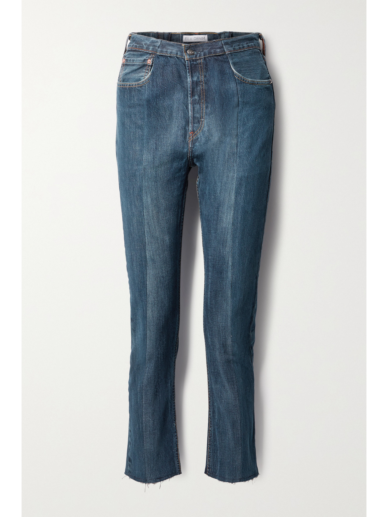 E.L.V. Denim is committed to minimizing its impact on the environment, which is why it upcycles vintage jeans locally in East London. Spliced together from two different styles, this 'Twin' pair sits high on the waist and has straight legs. The mismatched pockets and seams prove just how individual each pair is. Wear it with: [The Row T-shirt id1265718], [Ratio et Motus Shoulder bag id1281936], [Proenza Schouler Chelsea boots id1252899]. This product was Locally Made and Reduces Waste. Find out
