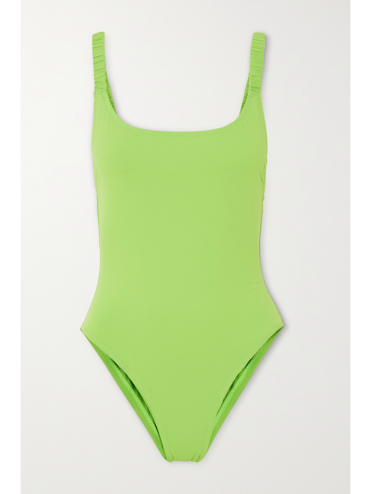 EXCLUSIVE AT NET-A-PORTER. Fisch's Agnes Fischer grew up snorkeling off St. Barth's idyllic coastline and witnessed the damaging effects of abandoned waste first-hand, so when she founded her label, she was determined to make it as environmentally friendly as possible. Inspired by the island's '80s beach scene, this swimsuit is cut from ECONYL® woven from re-purposed fishing nets and comes in a neon-green shade you'll only find here. It has scrunched straps and a low back, which the designer lik
