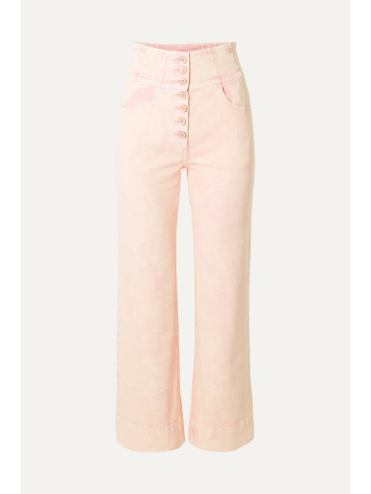 The soft hues in Ulla Johnson's Resort '19 collection make even the most classic pieces - like these jeans - feel so current and fresh. Designed with a flattering high-rise waist, they're made from slightly stretchy denim and have a straight-leg shape that flares subtly at the hem. The baby-pink shade is the perfect complement to this season's neutrals trend. Shown here with: [Totême T-shirt id1102034], [Ulla Johnson Tote id1100106], [3.1 Phillip Lim Slides id1100872], [Alighieri Necklace id1124