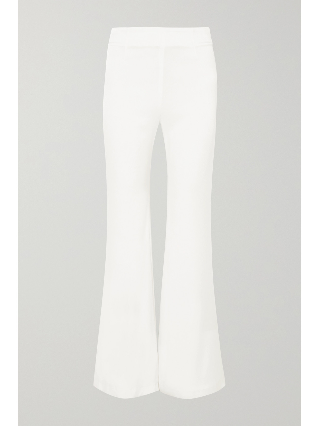 EXCLUSIVE AT NET-A-PORTER.COM. Teamed with the [matching top id1063523], Galvan's pants are an elegant choice for brides wanting to slip into something more comfortable during their wedding reception. This satin pair is minimally detailed for a streamlined look and has flared cuffs that won't restrict your movements on the dance floor. Shown here with: [Jimmy Choo Clutch id983296], [Stella McCartney Mules id1040859], [Brooke Gregson Cuff id1013270], [Buccellati Ring id1040440].