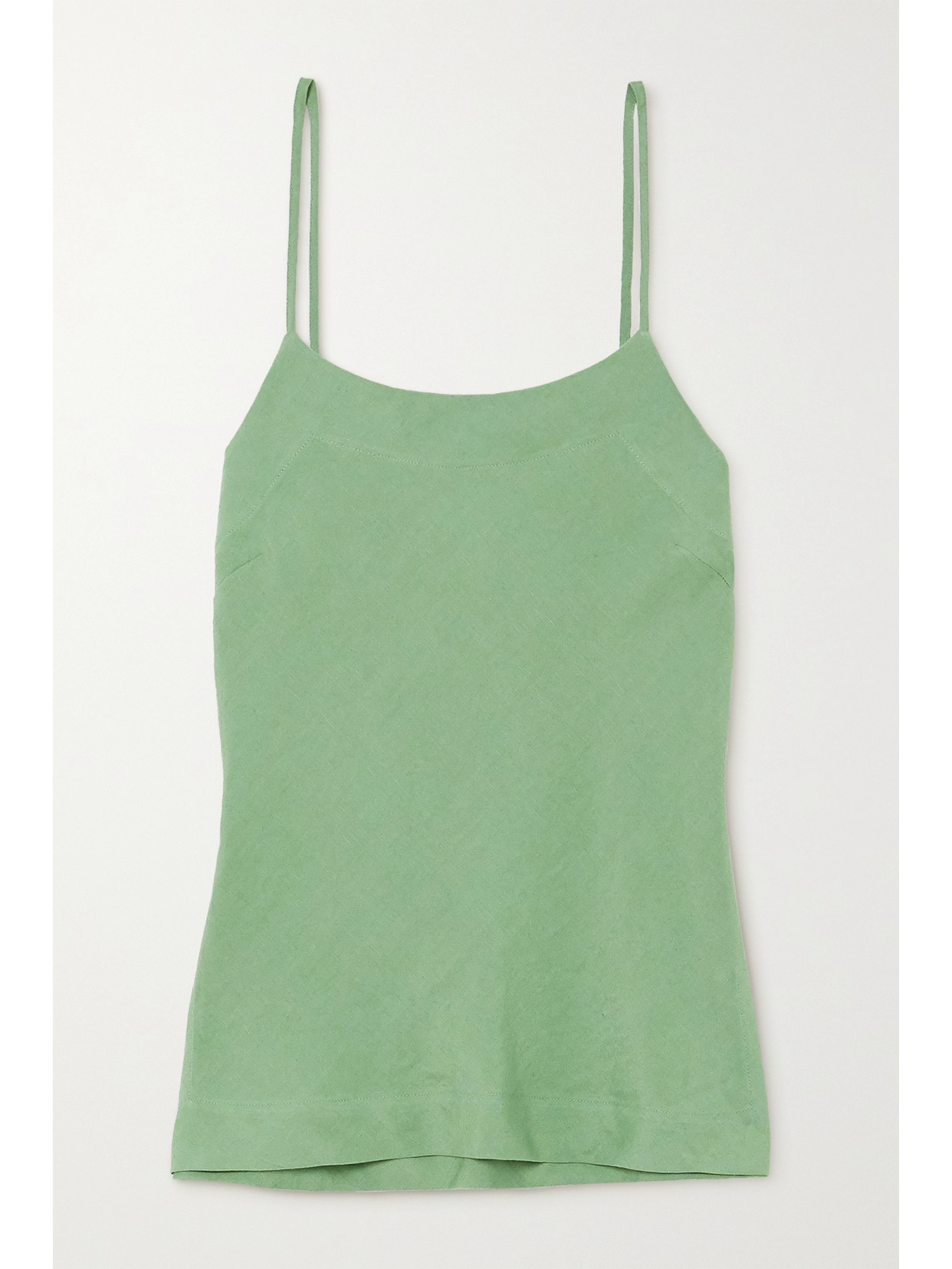 EXCLUSIVE AT NET-A-PORTER. Teaming up with LG Electronics, BONDI BORN has created a capsule that uses innovative AI DD™ technology to ensure each piece can endure wash cycles and therefore last longer. This camisole is made from breathable Japanese linen in a sage-green hue and has a versatile, minimal silhouette. Wear it with: [BONDI BORN Skirt id1308045], [Loewe Tote id1292481], [Emme Parsons Sandals id1236418], [Laura Lombardi Bracelet id1260654], [Loren Stewart Necklace id1260569], [Je