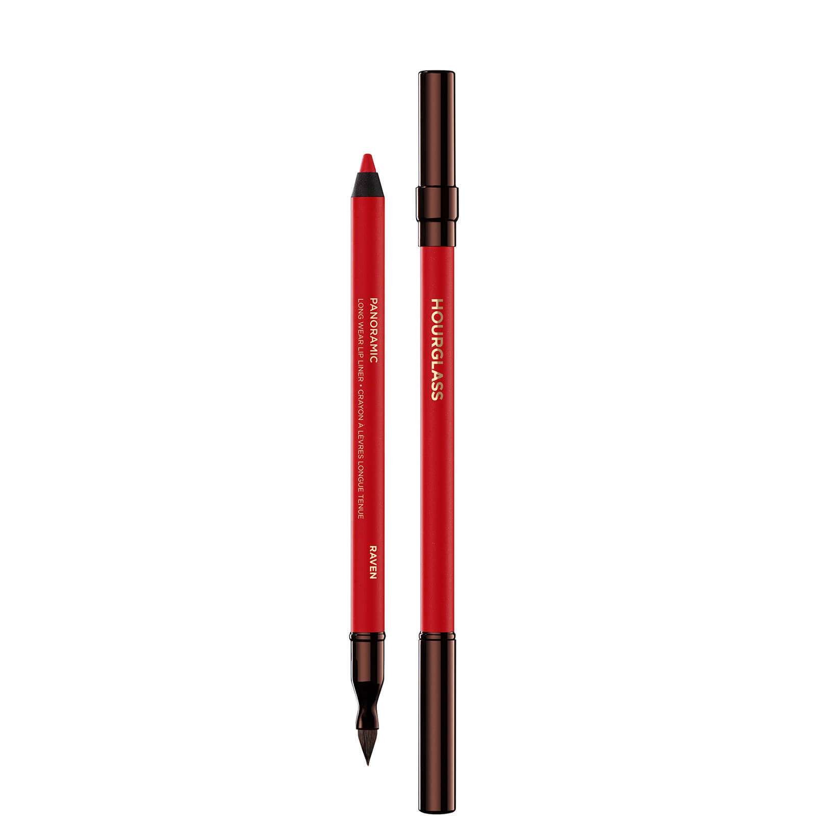 Highly pigmented and long-wearing, Hourglass Panoramic Long Wear Lip Liner will enhance every lip look you try. The rich, creamy formula glides on smoothly and features clever polymers that adhere to the skin to provide water and smudge-resisting staying power. The intense colour payoff delivers continuous all-day wear and the sleek, chic pencil comes with an in-built blending brush to perfect and evenly distribute product. There are seven vibrant shades to choose from, including red orange Rave