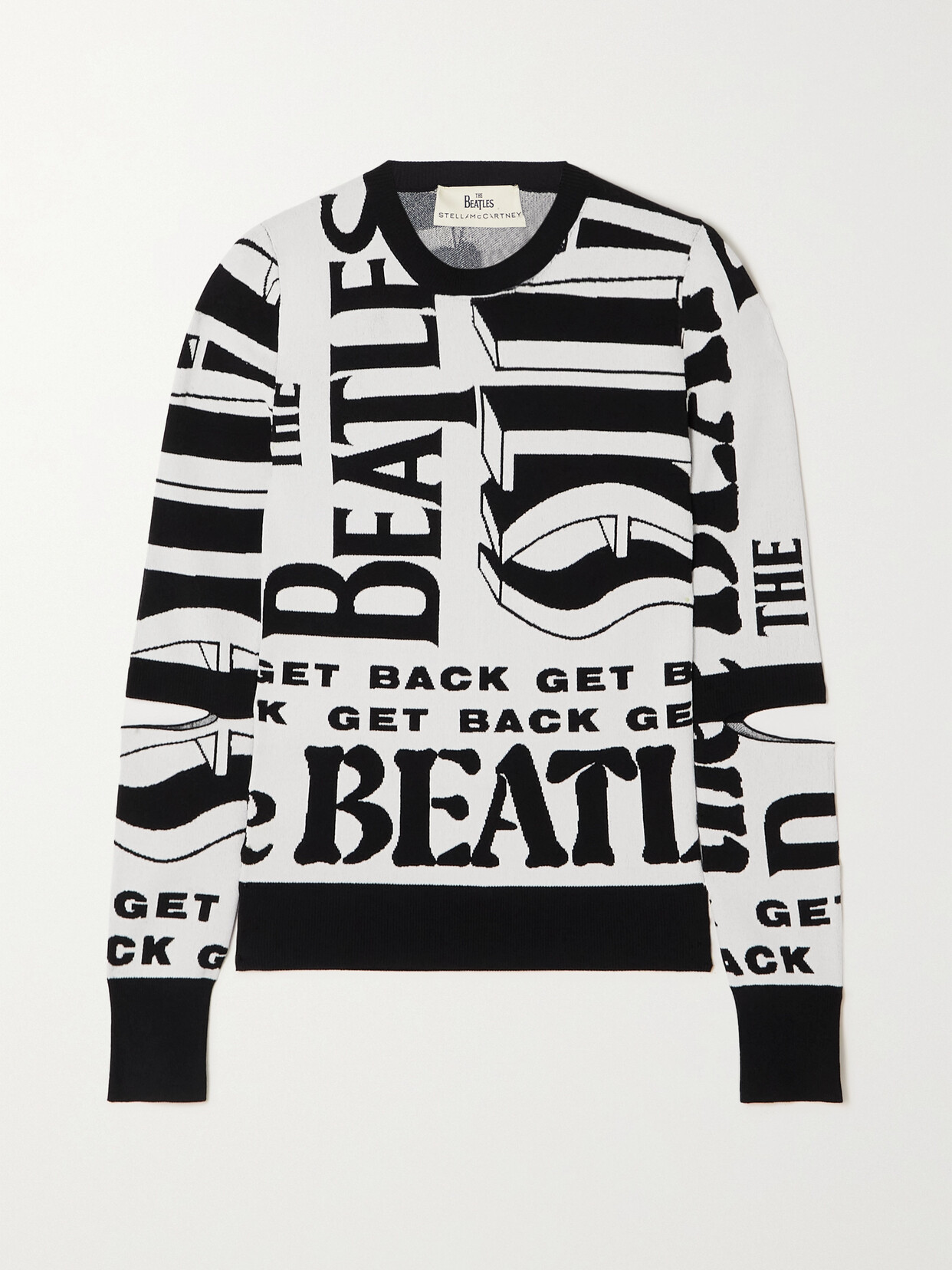 The release of Stella McCartney's sweater coincides with Peter Jackson's upcoming docuseries on The Beatles, which takes an intimate look at the making of the 1970 studio album Let It Be. It's spun from soft cotton that's intarsia-knitted with 'Get Back' - the record's original working title - and has a close shape and cutout elbows.