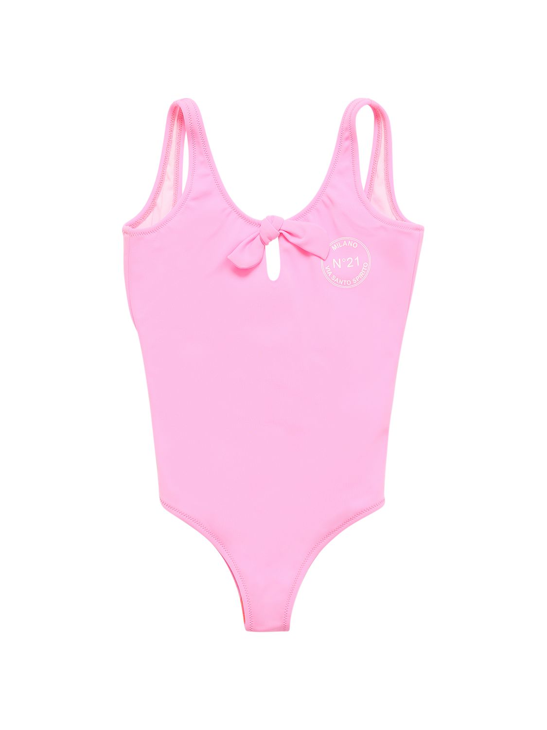 Fixed shoulder straps. Front bow detail . Printed front detail