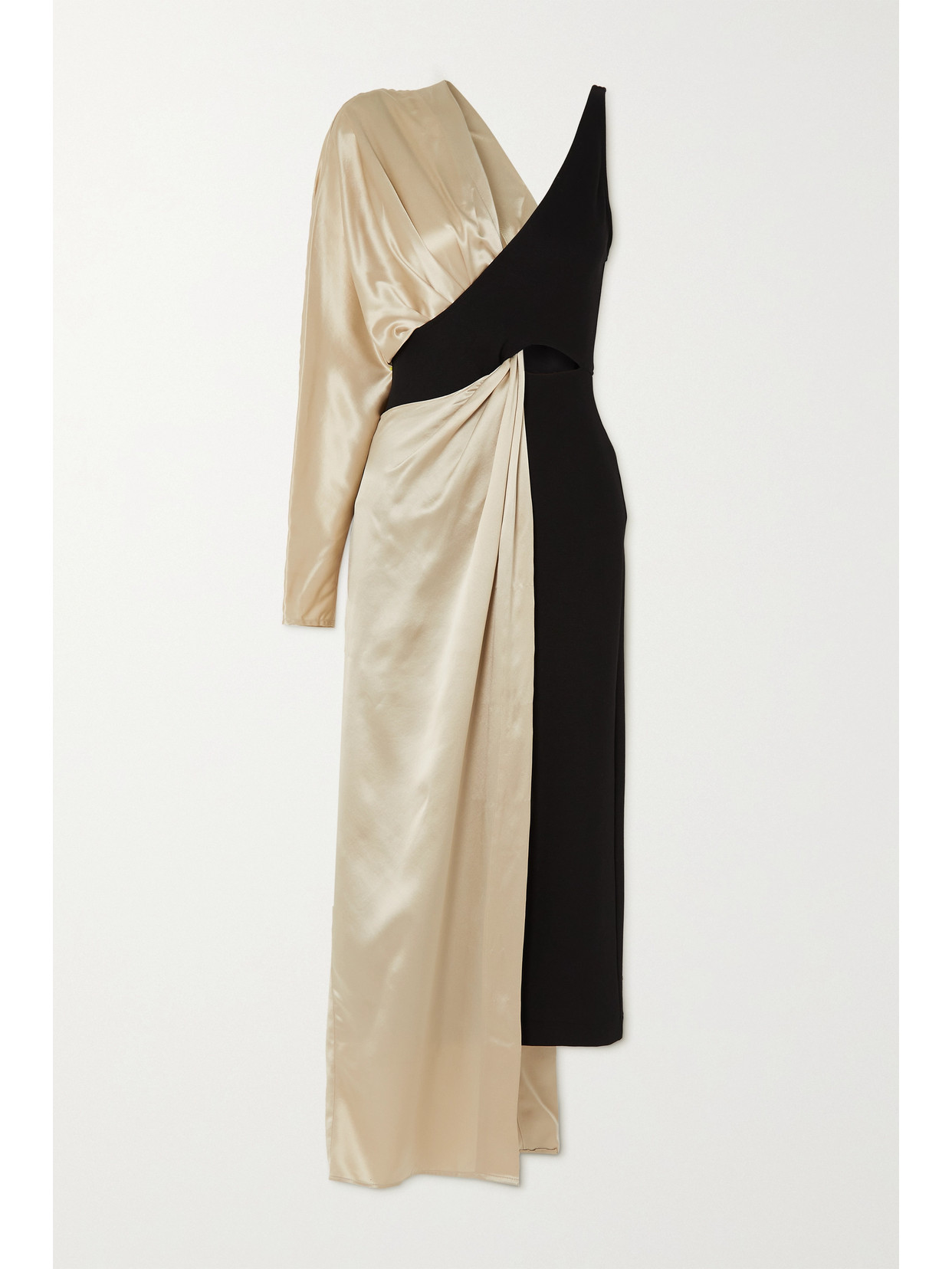 ARTCLUB produces its designs in limited runs to ensure minimal waste. Made locally in Australia, this 'Assisi' dress is cut from a combination of smooth piqué and silk-satin that drapes so elegantly. Highlight the plunging V-neck and bare arm by sweeping your hair back behind your ears.
