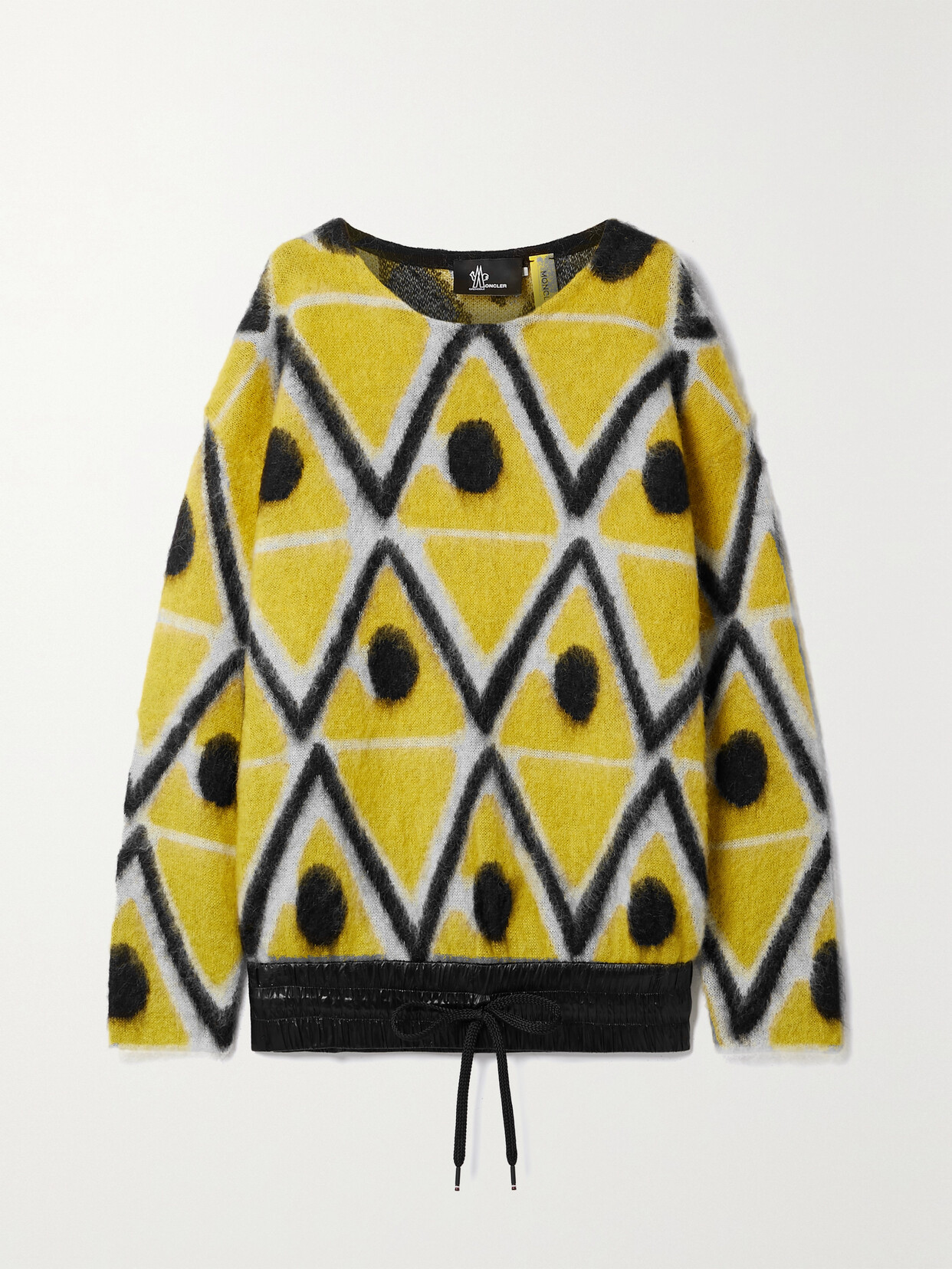 Moncler Grenoble for Moncler Genius' sweater showcases Creative Director Sandro Mandrino's knack for combining unlikely fabrics to create pieces that feel really fresh. Jacquard-knitted in Italy from mohair-blend, it has a drawstring shell hem and snap-fastening sides so you can adjust the oversized shape. Wear it with black leggings or track pants. Wear it with: [BOGNER FIRE+ICE Pants id1278003], [Moncler Grenoble Jacket id1251898], [Moncler Ankle boots id1252241], [Moncler Genius Tote id128124