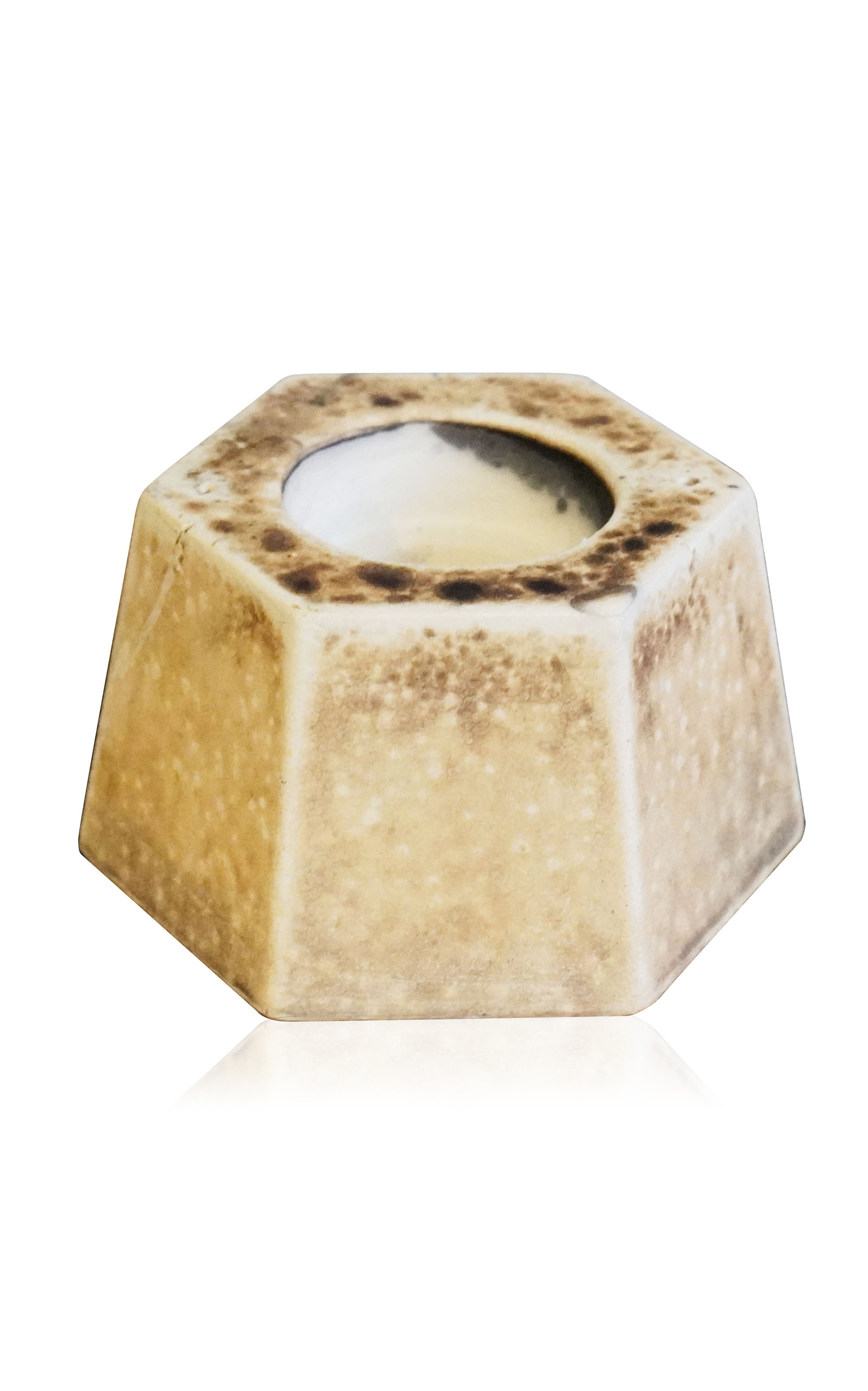 Keihatsu 啓発 - EnlightenmentOur Keihatsu tealight; candle and incense holder makes a perfect accessory to an office; bath; workspace or table. Its geometrical form is both functional; aesthetic and one of a kind."Raku" firing is done in an extremely hot kiln and then removed while the ceramic piece is still red-hot or molten. Immediately after coming out of the kiln; the ceramic piece is then placed in a reduction chamber – usually a simple metal bin or container – filled with sawdust or paper. The extreme heat from the ceramic piece then ignites the combustible material in the reduction chamber; which is then sealed for a while. What happens inside the reduction chamber next is the key to the unique and unpredictable colors and patterns of each "Raku" ceramic piece. With such technique; no two pieces will ever finish the same.