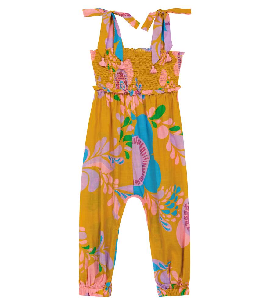 Zimmermann Kids' Teddy jumpsuit features a retro-look floral print set against its mustard-yellow base. Zimmermann Kids Teddy floral cotton jumpsuit